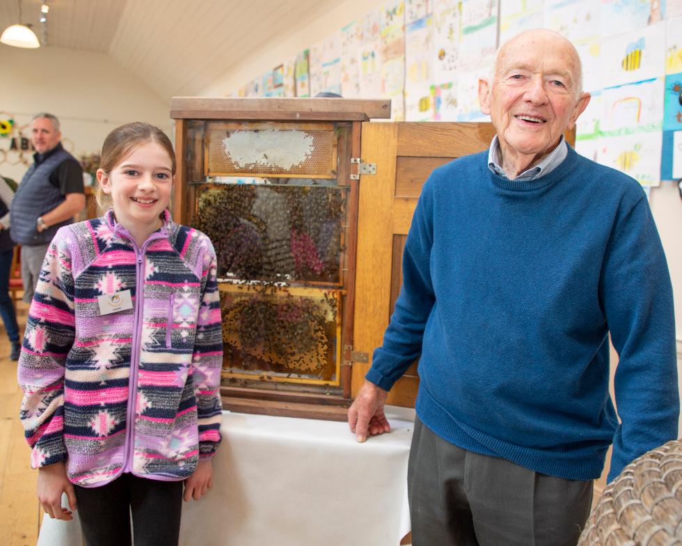 How wonderful to have our founding member Joe Good together with our youngest beekeeper Isobel Martin share their knowledge with the curious children at the Observation Hive.