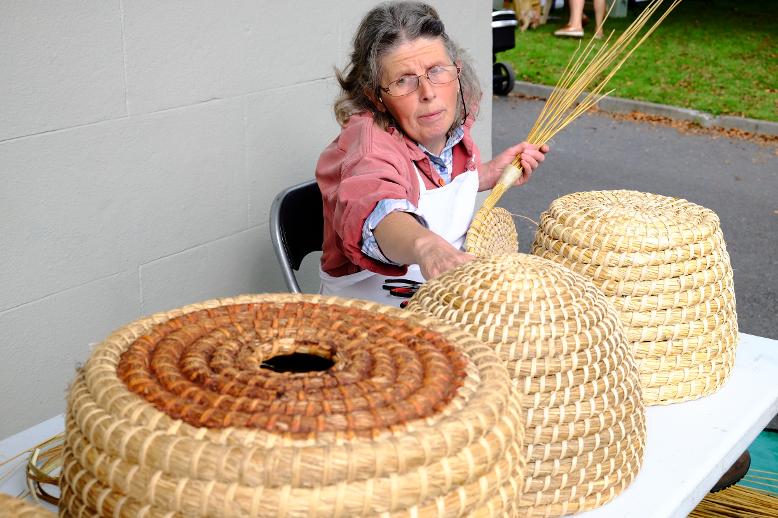 Jane Sellers joins us to demonstrate the wonderful art of skep making. She will make skeps to order from wheat or oat grass, or from a native Irish grass known as Purple Moor Grass , Molinia caerulea www.janesbees.ie